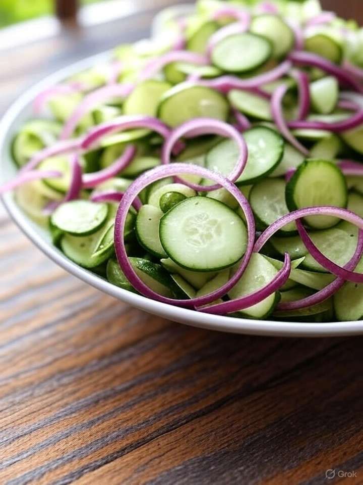 This Cucumber and Red Onion Vinegar Salad is incredibly healthy and hydrating! Cucumbers are very low in calories, high in water, and provide some vitamins (like Vitamin K) and antioxidants. Red onions offer some Vitamin C and beneficial compounds. The dressing is light, primarily vinegar-based. This salad is naturally gluten-free and vegan (if using plant-based sugar). It’s a fantastic way to increase your vegetable intake and stay refreshed without adding heavy calories or fats.